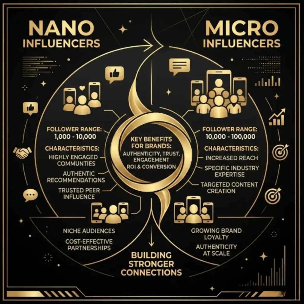 Nano and micro influencer marketing involves creators with smaller, highly engaged audiences. Nano influencers (1k–10k followers) and micro influencers (10k–100k) deliver authentic content, high engagement, and credible recommendations, making them ideal for building trust and conversions in modern marketing.